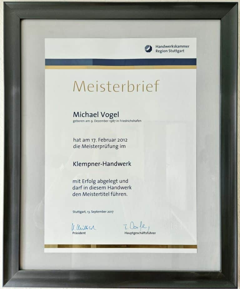 Die Flaschnerei Vogel wurde bereits 1949 gegründet und ist heute ein modernes Handwerksunternehmen mit starken Wurzeln. Seit 2018 wird der Betrieb von Michael Vogel, Flaschnermeister und Betriebswirt HWK, geführt.